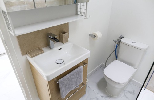 The kitchen is equipped with an oven, a stovetop, and a refrigerator, as well as a coffee maker, an electric kettle, and a microwave. Connect to the WiFi, or get cozy in front of the cable/satellite TV. Bathroom amenities include a hair dryer, towels, and toilet paper. Other amenities at this 2-bedroom, 1-bathroom rental include a dining area, bed sheets, an ironing board, and heating.