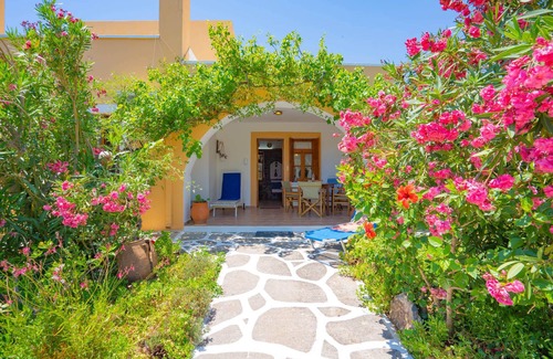 The perfect base to explore south west Crete. A great choice of swimming spots and trekking routes lie within a short distance. You are looking at a fully furnished family house situated in a secluded garden, just 200 meters from a sandy beach and 600 meters from Frangokastello. Maistros is located within a complex of four independent houses and is surrounded by olive trees, flowers and various fruit trees. The house is serviced daily. The price includes daily housekeeping.