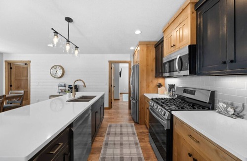 This lake house transforms into a winter wonderland, offering snowy thrills and a warm retreat to recharge in comfort and unmatched style. Direct access to miles of UTV and snowmobile trails right from the property makes it perfect for year-round adventure seekers.