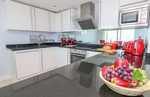 Amenities: Central heating. Electric oven, induction hob, microwave, fridge, freezer, dishwasher, coffee maker, kettle, toaster. Smart TV, WiFi. Off road parking - Please note, guests will have to access the property to gain the car parking ticket to place in your car windscreen whilst parking in bay 67 (first bay on right in front of the building), the car park pass to be returned to the apartment upon leaving at the end of your stay. Fuel and power inc. in rent. Bed linen and towels inc. in rent. Private enclosed balcony. Access to the indoor swimming pool and gym onsite at the complex. Sorry, no pets and no smoking. Shop and pub 0.2 miles. Note: No children. Note: Over 20's only