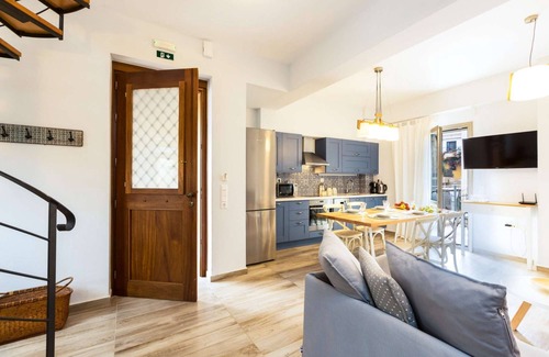 The Villa has a private parking area (free of charge) and access to a shared 100 sq.m. swimming pool and a separate swimming pool for children. The amazing pool area is equipped with sunbeds and umbrellas offering relaxing moments under the Cretan sun. Shared bathrooms and showers are also offered around the pool area.