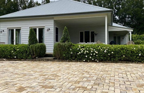 The House has three generous bedrooms sleeping up to six people (2 King beds and 2 King singles, all with pillow top mattresses). Each bedroom has its own reverse-cycle air-conditioning unit to ensure that you are always comfortable. The linens are fresh with high thread counts and the feature linens are a lovely mix of ticking and prints to create an eclectic country style a long way from the generic. The master bedroom has a delightful ensuite complete with a marble basin and the main bathroom has a luxurious soaker tub with stunning views up the Escarpment. There is also a separate powder room.