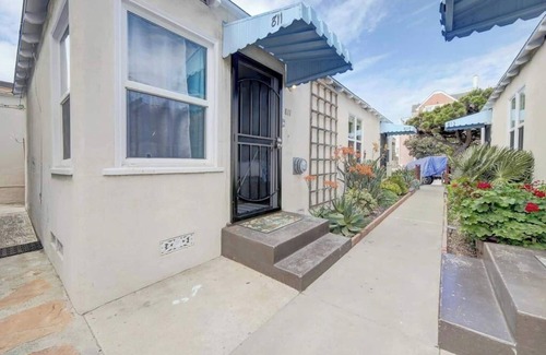 The ultimate San Diego destination for beach and paradise! Where it's always 5 o'clock! Located in Mission Beach just steps from the sand! Cross the street and you're at the beach! This adorable studio features a super comfy Queen bed, living space, and kitchen. Plus beach towels, beach chairs, sand toys, boogie boards and beach cruiser bikes supplied for cruising down the boardwalk! Outdoor shower for rinsing off. Plus window A/C is included, a rare luxury in this area!