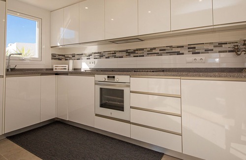 Lovely two bedroom apartment that has recently been completely refurbished and furnished in a modern style. The apartment has it's own WiFi connection, air conditioning throughout and has an open plan kitchen and lounge area ideal for holiday accommodation. The two bathrooms have also been refurbished, the master ensuite has a walk in shower and the second bathroom also has a shower. The large L shaped terrace has views of the marina entrance and the sea and benefits from plenty of sun.