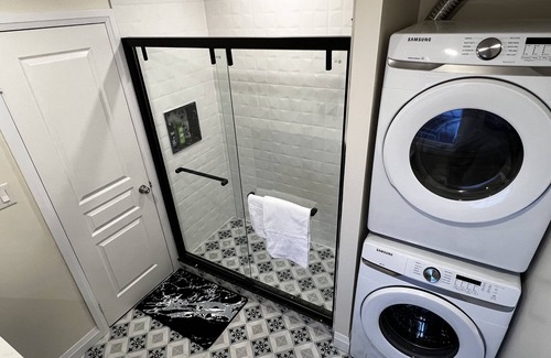 Have a comfortable stay at this newly renovated spacious bedroom with everything you need. This bedroom comes equipped with a king-size bed, an en-suite bathroom with a standup shower, a washer and dryer, a working desk, a coffee maker, toaster and microwave, and a mini-fridge.