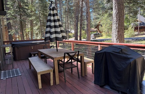 Get ready to relax in this 3-bedroom cabin in Tahoma. Located on a quiet, local family cul du sac. This welcoming property features 2 bedrooms with 2 king beds, another bedroom with a bunk bed, and 1 twin bed. There is a loft area, that is an additional living room with a twin murphy bed. Perfect for a family getaway. The kitchen is fully stocked with all of the cooking essentials. The 2 bathrooms come equipped with soap, shampoo and a hairdryer for added convenience. Enjoy all that Tahoma has to offer when you stay at our place. Look up at the stars while relaxing in the hot tub. Perfect after a day on the lake or on the ski slopes. An easy walk or bike to Chambers Landing Beach. 1 mile from Homewood Ski Resort.