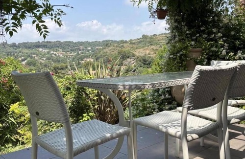 Independent air-conditioned house. Access via several steps : Entrance to living room with dining area. Fitted American kitchen. 1 bedroom with 1 double bed (160cm). Wall cupboard. Shower room (walk-in shower) with toilet. Private terrace with furniture. Common land. Parking at the entrance to the property equipped with 3 electric charging sockets for hybrid or 100% electric vehicles with a flat rate of €20 for the week in order to have charging available at any time. Charges included. Cleaning fee included. Sheets and towels provided. Tourist tax extra. On a beautiful and large estate, the owner, horticulturist and florist, has built 3 independent gîtes, each with their own character. The furnishings, Mediterranean colors and comfort make these gîtes an address to remember where life is good for a peaceful holiday in a sought-after natural environment. Biot is known for its famous glassworks and its many artistic artisans. Site classified by its historical monuments. The perched village is renowned for the manufacture of oil jars thanks to the importance and quality of the clay and baking stone. A visit to the Fernand-Léger national museum is a must for art lovers.