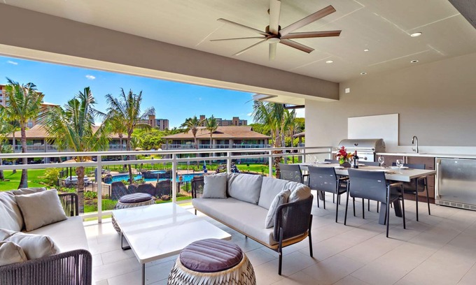 Your party will have plenty of room to stretch out in 2000+ sq ft of luxurious interior living area. Elegant contemporary finishes and premium appliances and fixtures compliment the spacious open floor plans. All villas are fully furnished with everything you need for the perfect Maui beach vacation.