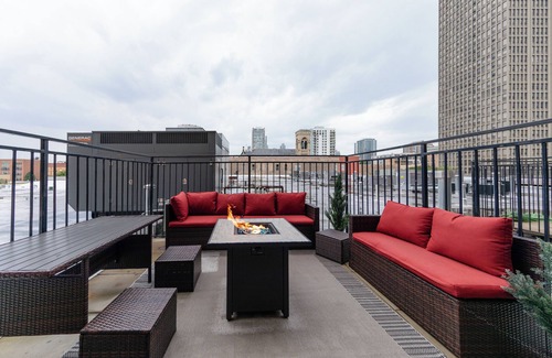 Designed with the traveler in mind, this two bedroom Suite (Sleeps 6) caters all your needs in a modern, spacious layout with metropolitan decor that gives this suite a sophisticated edge. The Michigan Suites are thriving with downtown vibes. This suite offers guests a modern space with custom comforts that are a cut above the usual Vrbo experience. Each room is uniquely designed to its own stylish accents and convenient amenities to give you the perfect mixture of home and away. At the premium status level, our suite provides you with a premiere experience in a premiere city.