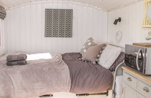 This delightful shepherd's hut rests on a working farm near the market town of Ellesmere and can sleep two people in one bedroom.