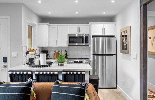 Welcome to Pine Ridge Retreat, a serene escape nestled in the Ponderosa Pines of Flagstaff! This newly remodeled, six-bedroom, three-bathroom with TWO separate kitchens and living rooms and blends modern luxury with a cowboy spirit. This home uniquely provides everyone the room and flexibility to stay together without being crammed together! Five rooms have king beds, the last has twin bunk bed. Large Smart TVs, high-speed internet, and smart home features. Unwind in the outdoor living spaces with a BBQ and fire pit. Located 5 mins from NAU, downtown, and near top attractions like Snowbowl Ski Resort, Grand Canyon, Sedona, and more.