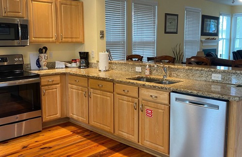 This amazing cottage is fully equipped with everything you need for a comfortable stay. It's both cozy and inviting and is equipped with 1 king and 2 queen beds, 3 tv's and high speed internet. 2 screen porches and a large kitchen with high top bar for entertaining. We allow 1 dog per stay with a paid pet fee. NO aggressive dogs. Some breeds are not allowed by the resort so please check with us before booking.
