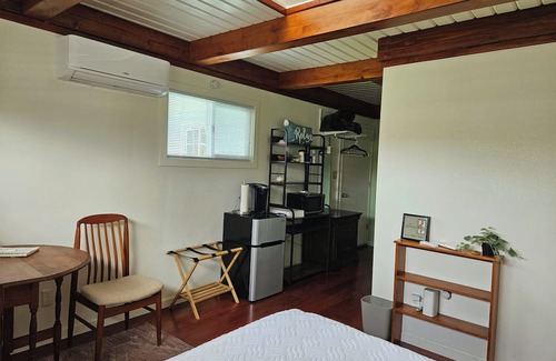 The room has lots of natural lighting including a skylight, and high windows. You’ll enjoy the convenience of hi speed WiFi, and a modern mini split for fabulous heating and cooling comfort,