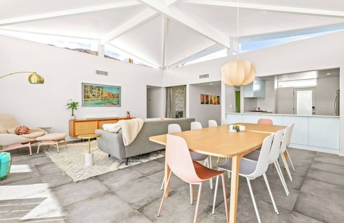 Mid-Mod Desert Escape, Iconic Canyon View Estates! Pet! 🌟Modernism Wk ‘25 🌟 is located in Canyon View Estates. Mid-Mod Desert Escape, Iconic Canyon View Estates! Pet! 🌟Modernism Wk ‘25 🌟 provides accommodation, featuring Guest Services, Child Friendly, Hot Tub, among other amenities. This House features Guest Services, Child Friendly, Hot Tub, to make your stay a comfortable one.