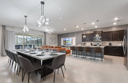 Discover endless fun and relaxation at this Windsor Island villa! Highlights include a Star Wars-inspired movie loft, themed rooms like Minecraft and Alice’s Wonderland, and luxurious spaces for the whole group. Lounge by the private pool and spa or compete in the TNT-themed game room. Resort amenities include a water park, clubhouse, and fitness center. Just 10 miles from Disney, this villa combines unique design, comfort, and convenience for the ultimate family getaway.