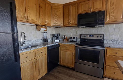 This impressive 2-bedroom/2-bathroom property is on the second floor, sleeps ten guests, and is one of the largest 2-bedroom units in Mountain Lodge. If you’re looking for the perfect place for large groups or special occasions, look no further! With 1,008 square feet, you’ll absolutely love the spaciousness of this unit! Mountain Lodge 248 features an expanded kitchen with beautiful granite countertops and plenty of cabinet space. It comes fully stocked with all the basics you'll need to prepare, cook, and serve mouthwatering meals.
