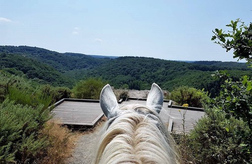 The mobile home is located on the heights of the equestrian center, property of 14 ha, and is surrounded by meadows with ponies and horses. It is close to the natural site of Roche d'Oetre, the leisure bases of Pont d'Ouilly or Clecy.