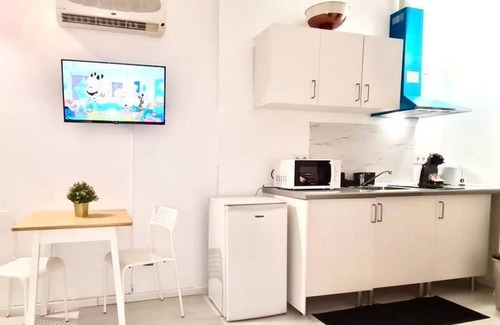 This studio, ideal for 2 people, is located outside Madrid and has a cozy living room and a fully equipped kitchen. It has a comfortable double bed and a full bathroom, ensuring a comfortable stay for both short and long durations. Equipped with free WiFi, air conditioning and heating, smart TVs, microwave, fridge, kettle and coffee maker, it offers everything you need to enjoy a carefree stay with all the modern comforts.