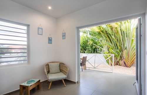 From the comfortable and fully equipped apartment ‘Paradise 2’, you can enjoy the Caribbean climate, close to the most beautiful beaches of the island. Take a dip in the swimming pool or plop down on a sun bed under the palapa. "Paradise 2" looks out onto the pool and palapa.