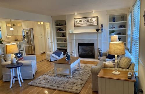 Updated cape home on a large double lot (perfect for lawn games) just 500 feet from your own private beach. Just a short walk to Millway Marina and downtown Barnstable Village for all your shopping, coffee and dining needs. Relax and unwind with the open floor plan and central air. Other amenities include Wi-Fi, outdoor shower, new propane grill and outdoor patio, ocean views and incredible sunsets. Comfortably sleeps 10 and parking available for 4 cars. Towels and linens included.