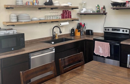 Inside, you'll find all the comforts of home, including a fully stocked kitchen with a stove, oven, refrigerator, grill, microwave, dishwasher, blender, toaster, as well as all the dishes and utensils you'll need to prepare delicious meals. Fully stocked coffee Nook where you can be your own barista. Relax in the living room and enjoy the smart TV, or challenge your family to a game night on the pool or air hockey table. Board games and other games provided.