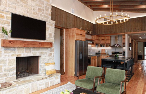 Experience a cozy yet spacious stay in this 3-bed, 3-bath home. The thoughtfully crafted open-concept floorplan features a fully-stocked kitchen, dining, and living area (with sofa bed) in the heart of the home on the first floor, with large picture windows offering sweeping views of the surroundings. Relax in the living room, outfitted with a large Samsung The Frame smart TV and wood-burning fireplace.