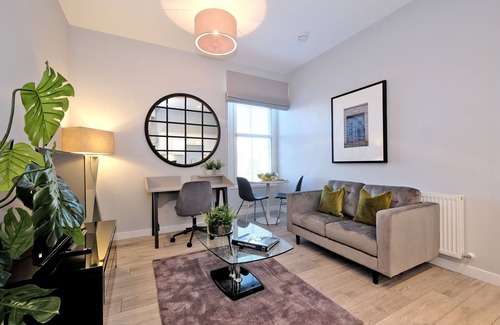 Located in the heart of the city, our spacious, open-plan apartment offers a welcoming atmosphere. A fully-equipped kitchen for creating culinary masterpieces; a, light, bright, comfortable living room for cosy nights in; a spacious bedroom with a King-Sized bed and calming colour palettes for that perfect night's sleep. The bathroom offers everything you need to start or end your day, with a large basin, mirror, and a large shower with a rainfall shower attachment. We also offer sumptuous towels for everyone staying.