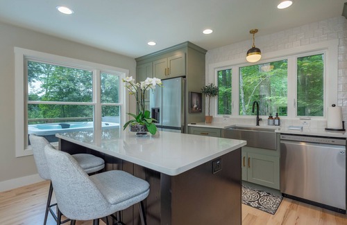 Asheville’s award-winning craft breweries and food scene are always enticing, but you can also skip it with a kitchen like this!