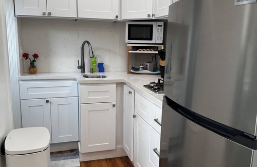 Welcome to our cozy, modern guesthouse in the heart of Saratoga! This private retreat features a fully equipped kitchen with a fridge, freezer, microwave, and stove top, perfect for all your cooking needs. Enjoy high-speed Wi-Fi, a comfortable bed, and a private bathroom with a shower. The space also includes a dedicated workspace, and a private entrance for your convenience. Located in a quiet neighborhood, it’s ideal for both work and relaxation. This property is 9 minutes away from Apple Park. 16 minutes from downtown San Jose. A brisk, STUNNING 40-minute drive to San Francisco (public transit available). 30 minutes from the famous Santa Cruz. 5 minutes from historic downtown Saratoga. Finally, 10 minutes from the lavish downtown of Los Gatos. The space has a FULLY prepared kitchen, and bathroom. Extra amenities like extra blankets are available in the closet. Cups, towels, pots, pans, and a microwave are available inside the guesthouse.