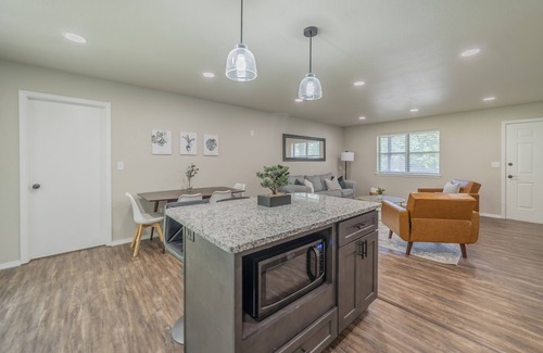 Located right off the 8th Street freeway exit, this newly remodeled one-bedroom unit offers a cozy and comfortable space perfect for a weekend getaway or an extended stay. Explore nearby attractions such as the 8th Street Market, Bentonville Square, Crystal Bridges, or the Amazeum, all within a 10-minute drive. Cyclists will appreciate the quick access to the Razorback Greenway, just minutes away by bike. For business travelers, the unit is within walking distance of the Walmart David Glass Building and other popular business locations.