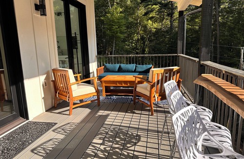 Modern Mountain Villa– Three Bedroom Two Bathroom - at 102 Cornet Lane in Highlands is 3.4 miles to Highlands city center. Our 3/2 furnished villa has two primary suites each with en-suite shower room on the entrance level and 3rd bedroom suite is upstairs, sleeps 6. The villa has 20' ceilings, transom windows and french doors opening to the covered back porch and is furnished with high end appliances, queen size electric beds, lounge chairs and 8 person dining table. Dedicated parking for 102 Cornet is on the side and front of the Villa.