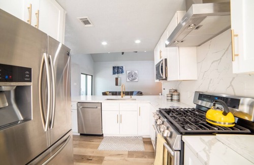 Modern Oasis has 2 Bedrooms , 2 Bathrooms, and max occupancy of 4 people. The minimum rental for this property is 1 nights, but this can change depending on the season you plan on staying. Previous guests have given good rated it, and VRBO labeled it a top-rated House because of the excellent services rendered by the owner or manager of this House, and has consistently provided great experiences for their guests. Most families or guests that use it recommend it to their friends and some of them are repeat guests. House has a friendly neighborhood, and the Garland has interesting places to visit. If you want to learn more about the House in Garland, such as places to visit and things to do nearby, you can check below to learn more.