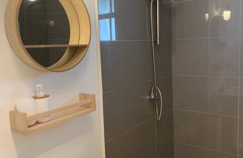 The studio is equiped with all the essentials to make your stay a pleasant one, such as a comfortable bed, a smart tv, kitchen and dining area and a modern bathroom. The studio has its own private entrance and parking spot inside to keep your car safe. It’s centrally located with Punda, the airport and Banda Abou all within a 15 min drive. Water and Wifi are included in the pricing. The studio has air conditioning, but also includes a fan, a microwave, waterheater and a smart tv.