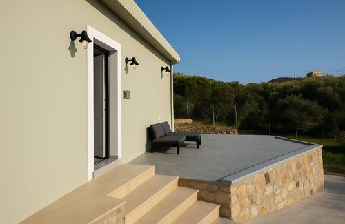 Located in the quiet village of Chrisoskalitissa and surrounded by olive trees, this modern studio is ideal for couples or solo travelers looking to unwind in nature without sacrificing comfort. Inside, you'll find a queen-size bed, a modern bathroom with walk-in shower, a fully equipped kitchenette, and a private patio — perfect for morning coffee or evening wine.