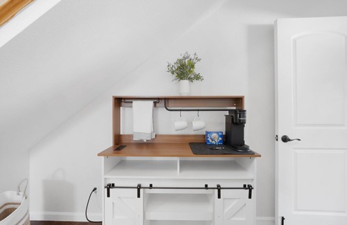Drift off to sleep in one of our 4 plush queen-sized beds, with room for 3 more guests on the comfy pull-out couches – this haven sleeps up to 11 guests! Two luxurious suites offer an extra touch of comfort: one with a handy kitchenette, and another with a charming coffee bar. Relax and unwind in the spacious living room featuring an original wood-burning stove (non-operational), or whip up delicious meals in the fully equipped kitchen.