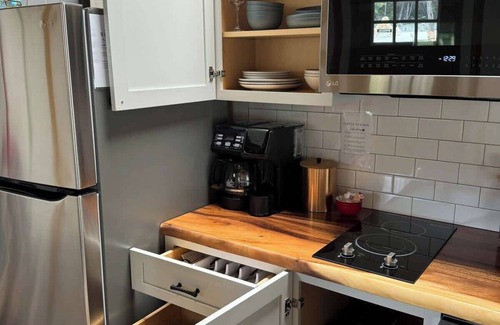 - **Inviting Interior:** Relax in a beautifully appointed space featuring a plush queen bed, cozy seating, and charming décor that brings the outdoors in.