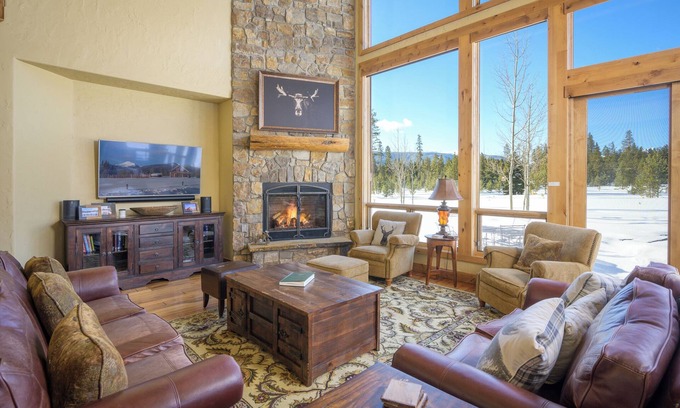 Unwind beside one of two cozy gas fireplaces or relish the great outdoors on the summertime patio featuring a wood-burning fire pit – simply ensure you bring along firewood to enhance these enchanting experiences! Boasting 3.5 baths and a host of amenities, Moose Run provides everything necessary for an unforgettable family holiday.