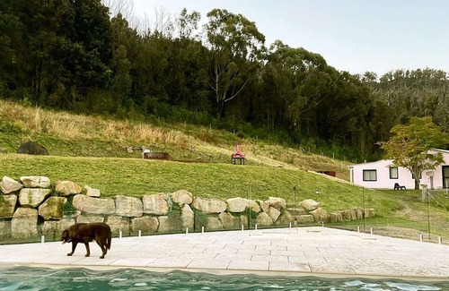 Moosewood is perfect for gatherings of all types - a heaven for kids, pet friendly, pool and set on 100 acres! The home is designed to enable you to relax, enjoy and create special memories surrounded by wildlife and nature. You may spot kangaroos, wombats, and abundant birdlife – lyrebirds, wedge-tailed eagles, and friendly king parrots. The indoor areas feature a wood burner, split system air-con and heating in all rooms, Wi-Fi, foosball, games, piano, and smart TV. Outdoors includes a landscaped enclosed garden pool with sweeping views, paddocks, fire pit, pizza oven, competition-sized boule court, table tennis, trampoline, and tyre swings!