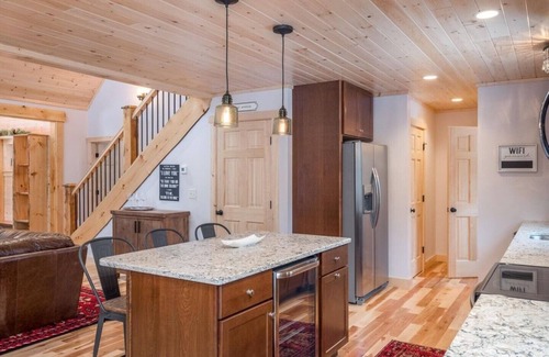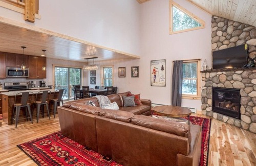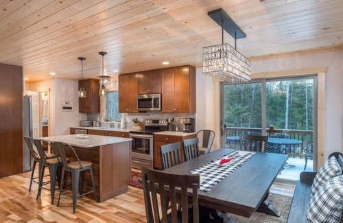 Less than 10 minutes to Sunday River and less than 1 minute to downtown restaurants. Four spacious bedrooms all with private bathrooms. Finished basement with additional two single beds with arcade games and board games for adults and kids. Covered hot tub and fire pit makes this home perfect for relaxing after a long day of skiing, hiking or golfing. Open concept living room and dining for enjoying time with a large group. Grill and outdoor seating with peak through views of Mt Abram. High end linens, towels and bath products included in your stay.