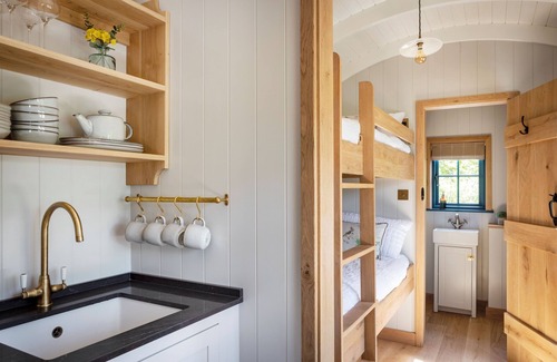 Our shepherd’s huts can sleep either two or four people. They come with a king sized bed or a king sized bed and bunk beds in our family hut. Bunk beds are full size and can accommodate adults if required.