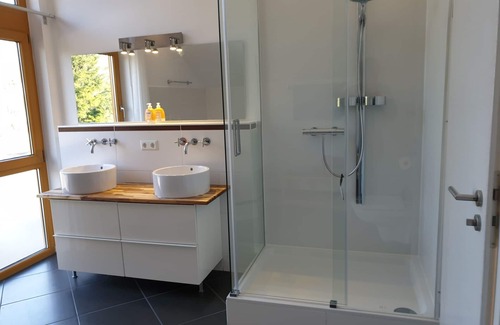 Our modern apartments are located in a 2 unit house (built in 2006) in Dürrnhaar about 6 miles from the southeastern outskirts of Munich. The S-Bahn station can be reached on foot in less than 10 minutes. Free Internet access is available. Parking spaces are available in front of the house. Towels, bed linen, internet access, utilities and final cleaning are included in the rent. Bringing pets is not allowed. These are non-smoking apartments.