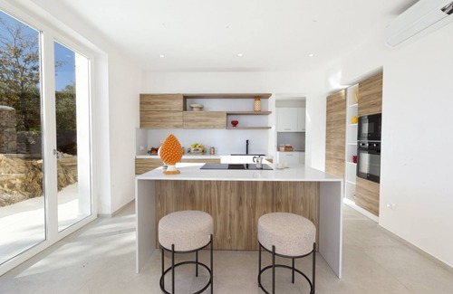 Villa Larita is meticulously designed to embody Mediterranean elegance, with rooms that boast panoramic views and decor that emphasizes comfort and style. The outdoor infinity pool, surrounded by olive trees, features a spacious terrace with sun loungers and outdoor seating, enhancing the tranquil atmosphere. The added convenience of an outdoor pizza oven and barbecue sets the stage for unforgettable evenings