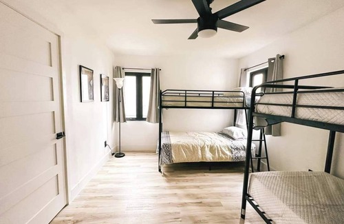 This Dallas house boasts 4 inviting bedrooms, including 1 king bed, 2 queen beds, and 1 bunk bed. With heating, AC, and WiFi, guests can stay comfortable and connected. The 2 bathrooms feature showers for convenience. Come experience a fabulous stay at our delightful property. We look forward to welcoming you to our place.