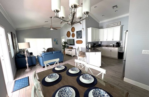 Professionally decorated with high-quality classic beach style furnishings, this 3 Bedroom, 2 Bathroom home sleeps 8. Master bedroom is equipped with a king, 2nd bedroom has a queen, and the 3rd bedroom contains 2 twin beds. A queen blow-up mattress also available. Each bedroom has its own television. The spacious open living room has a large screen TV and DVD player. Enjoy views of the canal from the screened-in porch and cooking in the fully-equipped kitchen. Free high-speed WiFi and cable service also provided.