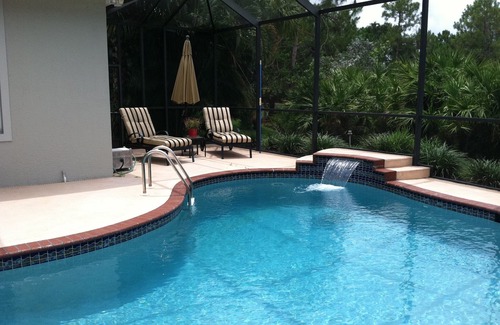 If you are looking for relaxing place - you found it! Private, heated pool to enjoy with family or friends, 4 bedrooms, smart TV, Apple TV and Roku to enjoy your favorite movie in the evening. Home is truly home away from home. It is VILLA but very private. Master bedroom with king size bed and own bathroom. 2 other bedrooms with queen size beds. 4 th bedroom has a twin bed and a couch. Fully equipped kitchen, outdoor table and chairs, BBQ will help you to enjoy it all Naples can offer. Beach chairs, umbrella and cooler will help you to enjoy Naples beautiful beaches. This house located 7 min away from Vanderbilt beach, 5 min to Marcato with restaurants and movie theatre.