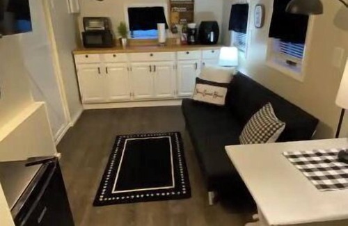 Small but efficient with a brand, new bathroom, and a nice size master bedroom, kitchenette with a coffee maker and air fryer, a washer and dryer, a toaster oven and a second flatscreen TV. The futon couch folds down into extra sleeping for guests.