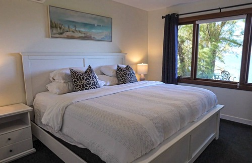 The private suite consists of two Comfortable Bedrooms with deluxe king and queen beds and quality linens, Lakeview Living Room. Private Bathroom with Shower. Well equipped Kitchenette with coffee maker, toaster, microwave and dishwasher. (PLEASE NOTE: we are unable to supply a hot plate or stove for insurance reasons) Living Room with flat screen TV, Cable and DVD player. Main bedroom and living room both have garden and lake views plus a private covered patio with barbecue/side burner and sitting area.