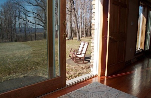 Sitting a top of a hill with floor to ceiling windows and panoramic mountain views Fagel Farm is a house set in natural beauty that offers generous and lush accommodations. Surrounded by its own 125 very private acres of open fields and wooded trails Fagel Farm was specifically designed to be a place for family and friends to gather. Less than 5 miles from Frank Lloyd Wright's world famous Fallingwater, some of the best white water rafting in the country. There are also 2 ski resorts and 8 state parks Fagel Farm within a short driving distance, making this location the perfect destination for your vacation get away.