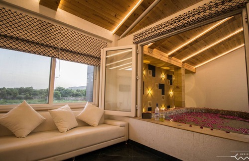 Welcome to this quaint abode set amidst the a modern, three-bedroom, luxurious Spanish villa. Taste the essence of slow living with its 5 acre neatly manicured lawn and a dairy farm. Pluck your own veggies from our vegetable gardens, relish fresh milk straight from the cows, soak the winter sun or beat the summer heat in the splash pool, all untouched by the chaos of city life.