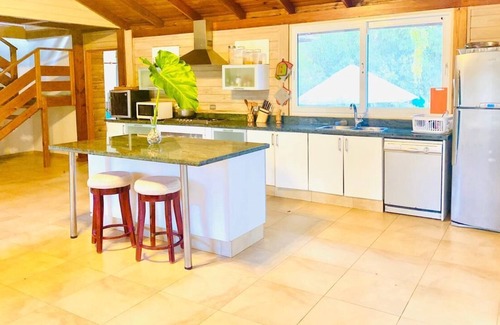-Wonderful garden of 1800mts. surrounded by trees and extraordinary sea and mountain views. Hanging hammocks. Table and domino and card game. Homemade charcoal BBQ.
